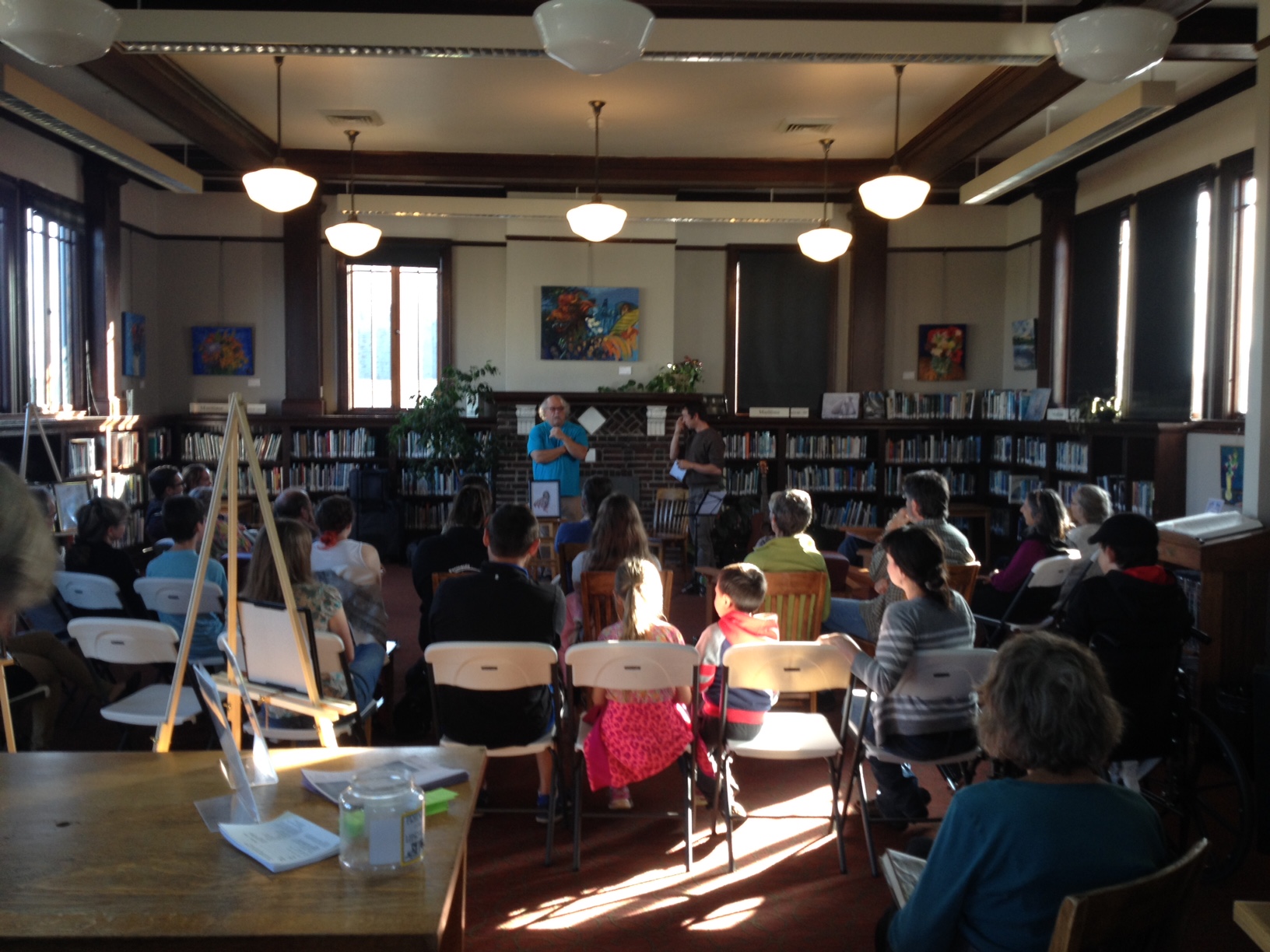 IMG_1788 Published July 1, 2016 at 1632 × 1224 in The Real Surfers Coloring Book is… ← Previous Surfer/librarian Keith Darrock took this photo of Franco Bertucci and I setting up and preparing to kill it. It didn’t feel like ‘killing it’ at the time; but, for a poetry reading, it was racy and raucous