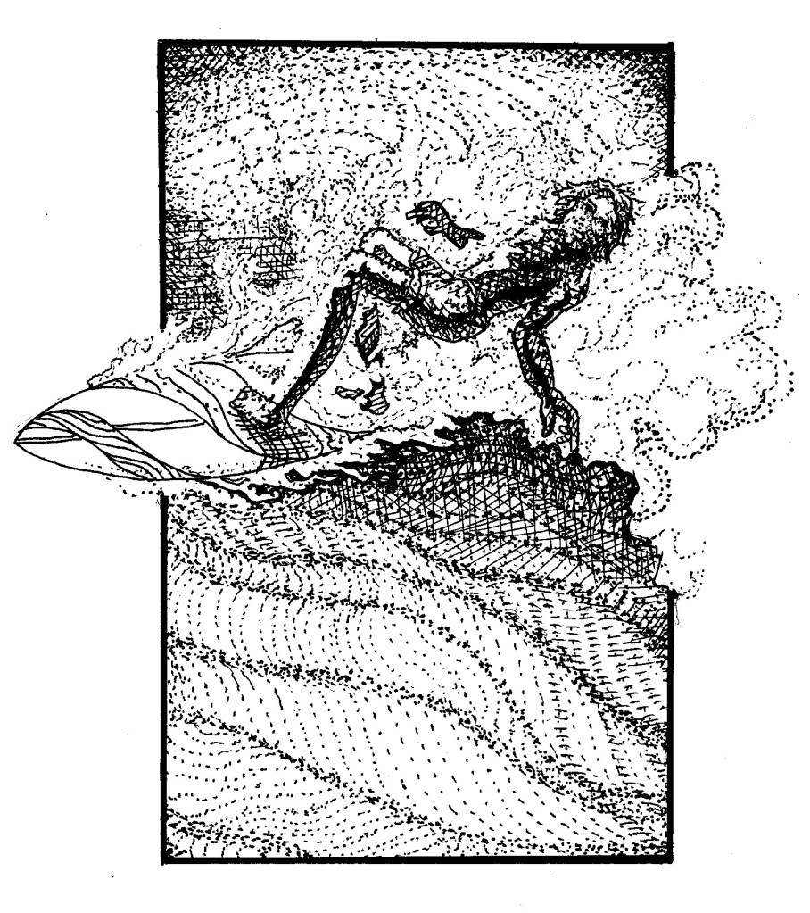 I’ve also discussed formatting and such things with my daughter, Dru, pressing her into service to help put together a slide show of my illustrations (not just surf stuff) that can be shown to folks who are willing to listen to a reading from “Swamis” without having to also look at me reading it. This is for a presentation with the Port Townsend Library, set up by surf rebel librarian Keith Darrock. Not set up yet; we’re working on it.