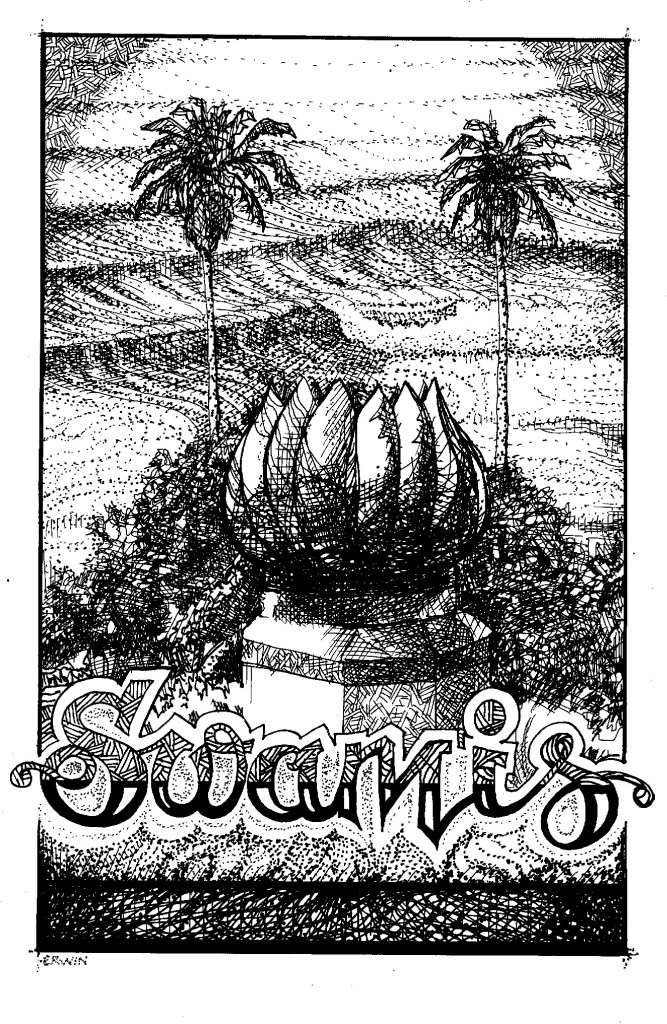 I am discovering more about the art and science of printing, particularly about how yellow seems to overwhelm other colors. Here is a version of my latest “Swamis” illustration: