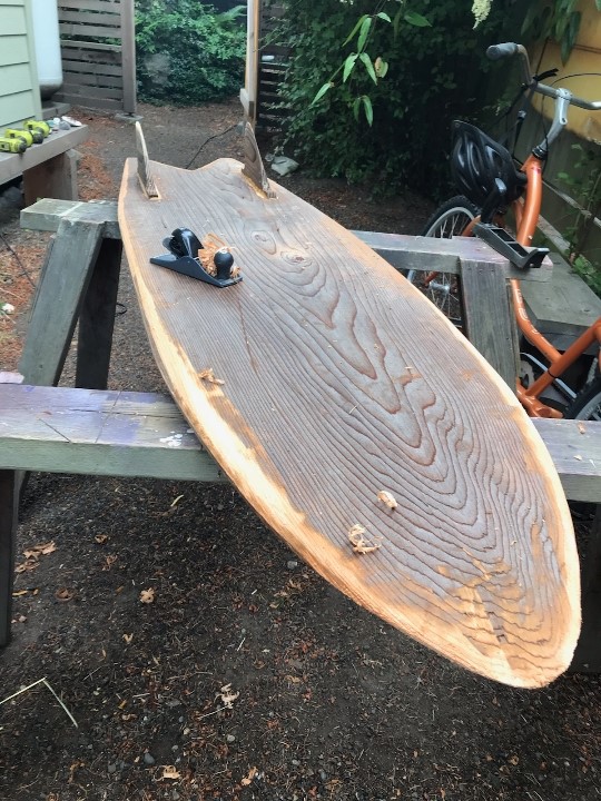 THE CURRENT PLAN IS for me to paint it however I want. THANKS, I would anyway. I do want to preserve the natural cedar look, but… we’ll see. I will post some photos on Wednesday and will have the board ready for the EVENT. There is some discussion on ownership of the board. ADAM, because he supplied the slab and did the initial work, JOEL, because Adam gave it to him, Keith, because he put it back together, Erwin, because I’m going to make it, um, better. Chris, for his efforts in saving it from the pyre, and Aaron, for successfully burning and riding it… no, probably not. STILL, up for debate.