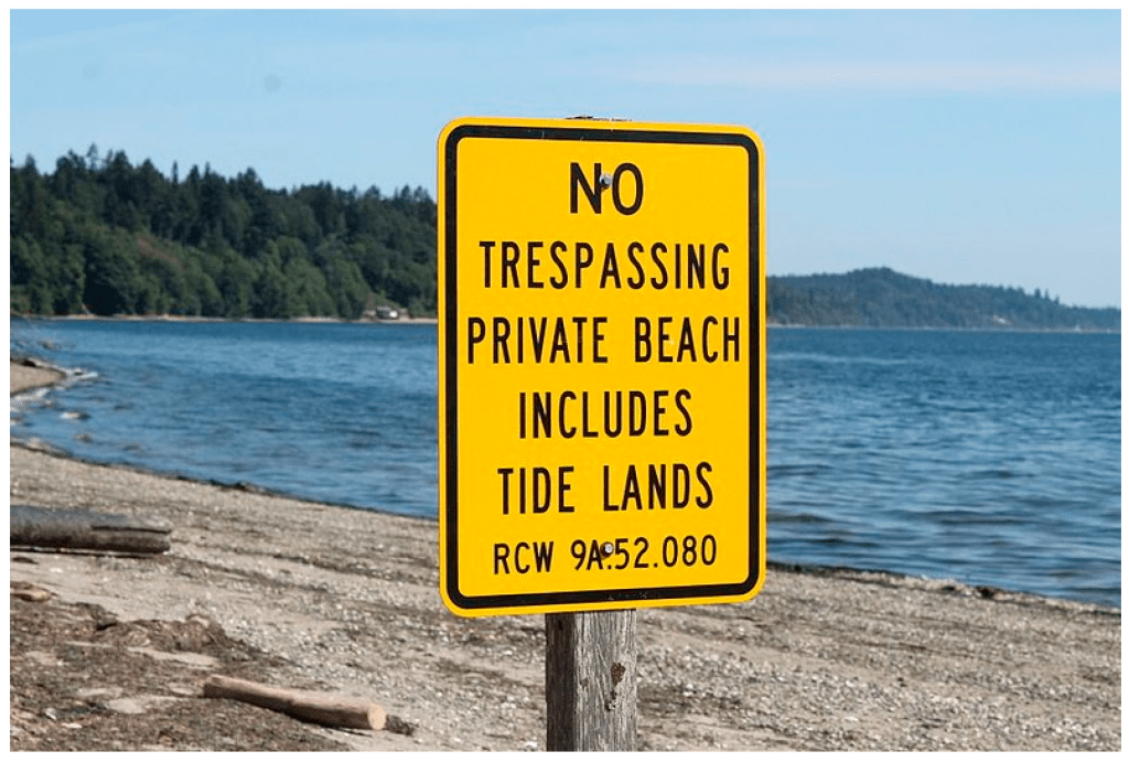 In Washington State, with our thousands of miles of saltwater frontage, the beaches and the valuable tidelands belong to the landowners. It’s not all tideflats rich in oysters and geoducks and all that; some people just agree with the opinion that beachgoers and surfers somehow wreck the view.