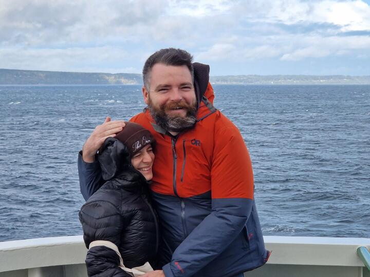 CHIMACUM TIM not looking at all like a guy with a Philadelphia/Jersey Shore confrontation-ready attitude, and ANDREA. I did send Tim the photo and did ask if it was okay to post it. I am so non-confrontational. He said it was kind of out of focus. Yeah, well, most times part of my finger would be over your face, Tim.