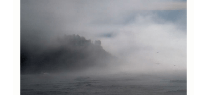 IF YOU SCROLL DOWN to the previous. post, there’s a piece had written a while ago, then worked on again. The poem dealt with fog and Angels and such stuff. I posted it on Friday morning (or really late Wednesday) after I worked on the end of the Coyle Peninsula, tried to finish before dark, didn’t, and drove the twenty or so miles home (Coyle is part of Quilcene) on winding roads with no fog lines, eight miles of which was in minimal visibility fog, with cars and trucks coming at me with all lights blazing. I found an illustration that worked, but, if I had waited until Saturday, a shot of the lineup at fogged-in LaPush would have served as well. Or better.