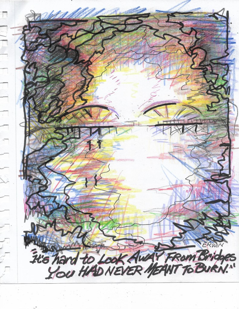 Then, again, maybe I’ve always made some connection. Unprompted. The first drawing was done in the late 1980s. I added the lettering more recently. Capturing the essence and the allure of the sea; I’ve never quite gotten it right. And… I keep trying.