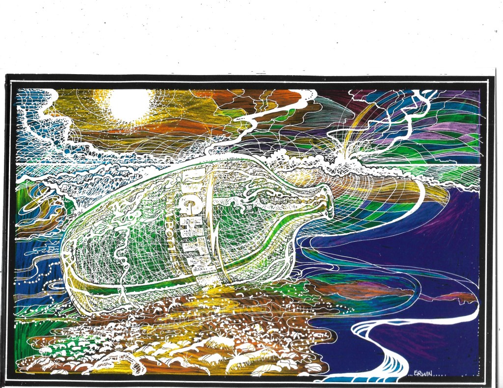 MEANWHILE, in preparation for the upcoming SURF CULURE ON THE STRAIT OF JUAN DE FUCA AND THE SALISH SEA EVENT, I am trying to get a collection of (the best of) my years of art stuff together and scanned, the hoped-for result a sort of powerpoint thing that can be displayed on one of two screens in the PORT TOWNSEND PUBLIC LIBRARY, 6pm, Friday, June 30.