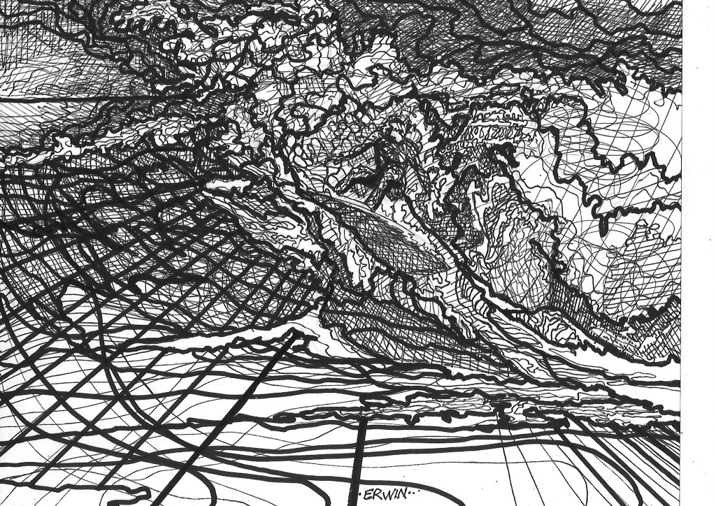 “Dark Cutback”- Pen and Ink, “Come In”- Pencil, pen and ink