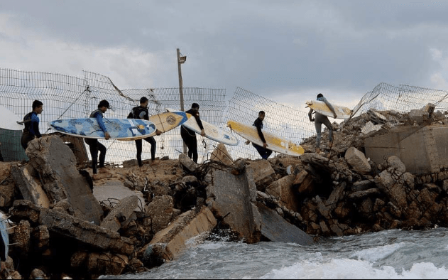 Gaza surfers. Surfing is another sport where HOPE is crucial. I got this photo searching for ‘Gaza surf forecast,’ and, yes, Surfline has one. AND if you are wondering what’s going to happen with all the concrete and rebar and rubble from the destruction… jettys, artificial reefs. Oh, it could be such a marvel.